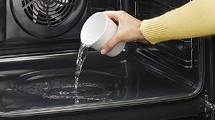 ![]() 1STAP 1 1STAP 1Giet 100 ml water in de uitholling in de bodem van de oven.